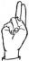 На ћирилици написано РАДОВАН ЧУБРИЛО састоји се из 14 слова [?]. Исписано ћириличном једноручном азбуком за глувонеме: